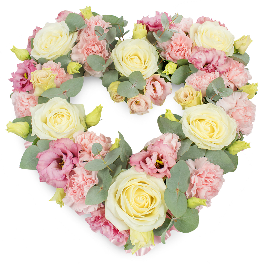 Show your deepest respect with our Elegant Memorial Arrangement. This sophisticated bouquet combines white roses, pink carnations, and pink lisianthus, styled with aromatic eucalyptus leaves for a timeless tribute.